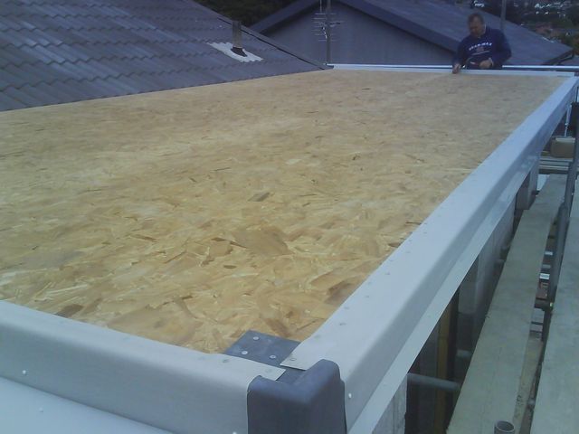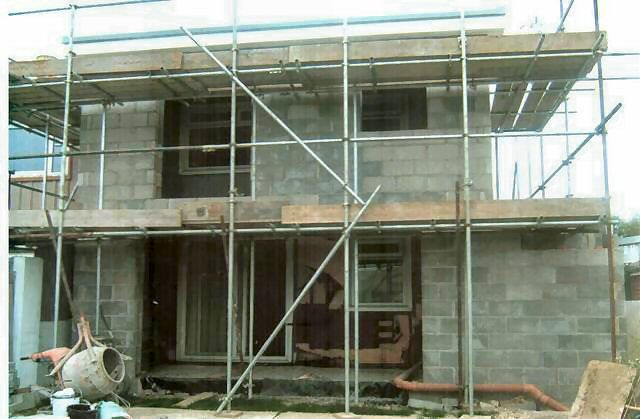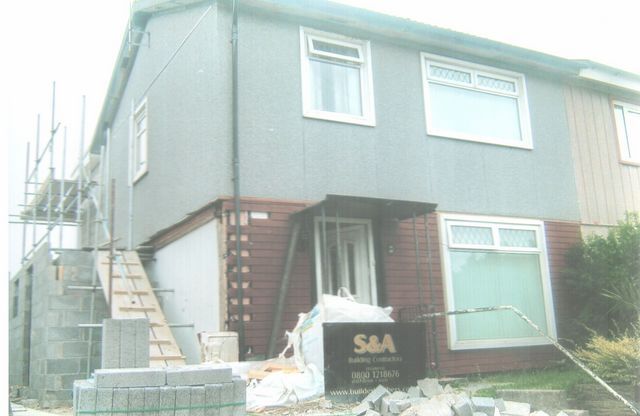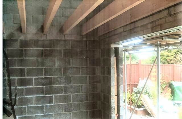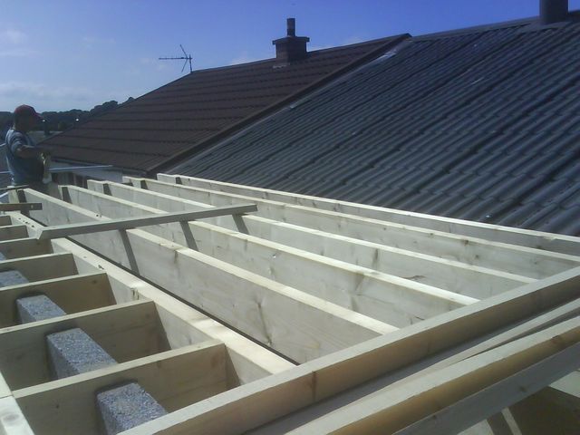 A flat roofed double extension with a single storey side extension.